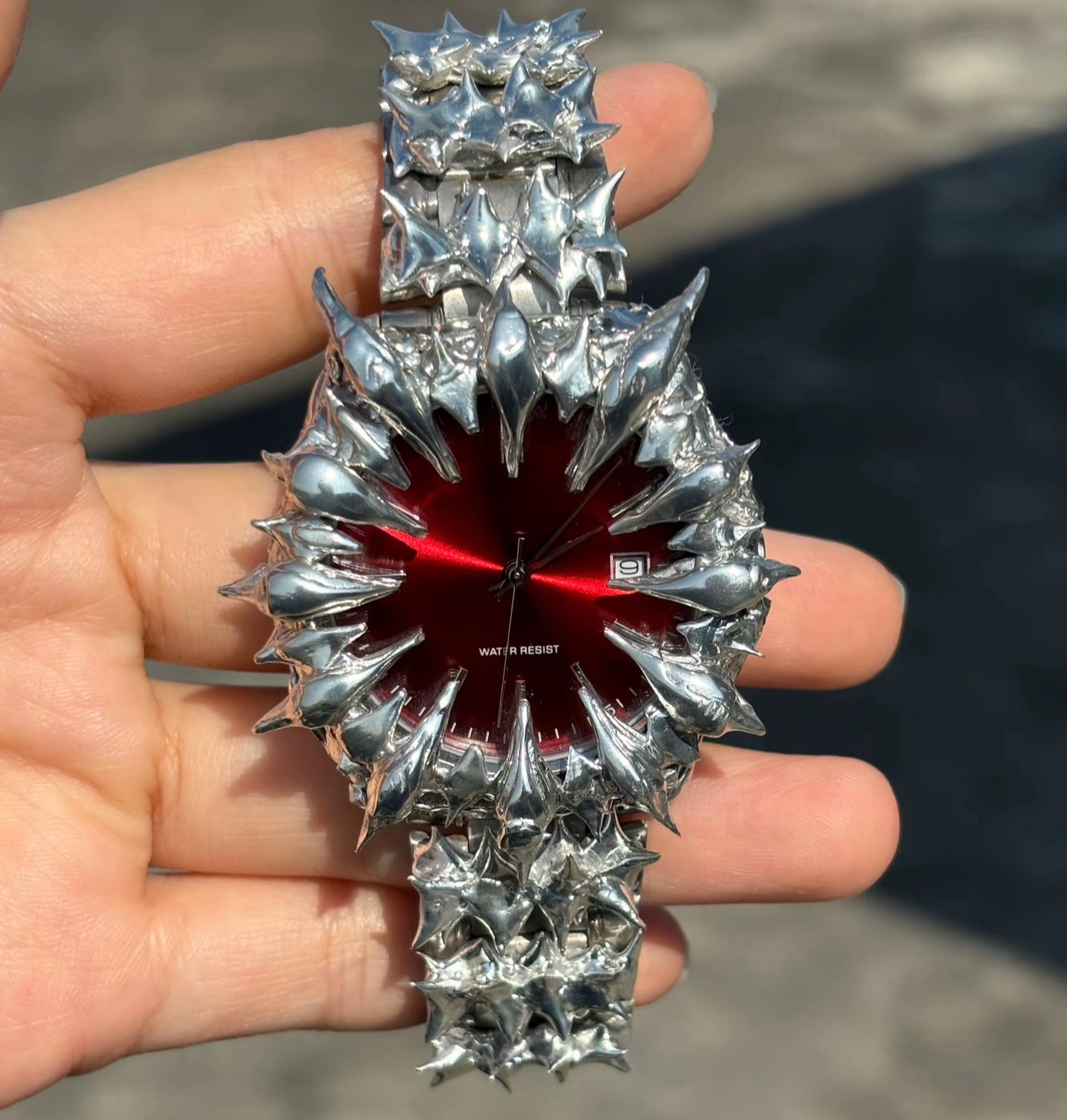 Please note: This watch contains sharp or protruding design elements and is intended for fashion or display use. Handle with care. Not recommended for children or high-activity wear.
